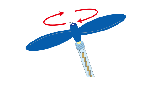 プロペラを回しゴムをじゅうぶんに巻きます。