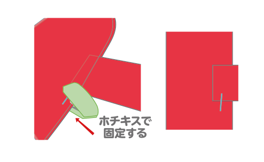 ※ホチキスは左のように、でっぱりにひっかかかるようにとめます。 -