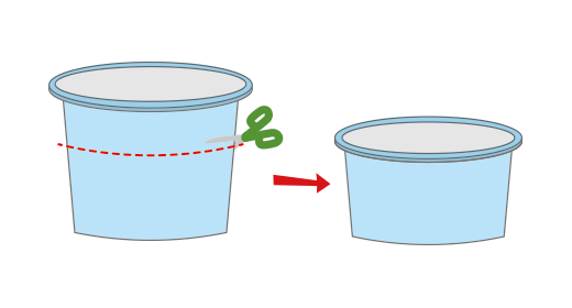 ヨーグルト(牧場の朝)などのカップを半分(はんぶん)に切ります。 -