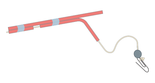 下のストローにタコ糸を通(とお)して、マグネットとクリップを取り付けます。