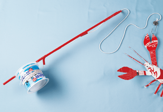 大きな生きものがつれると、つりざおのストローがぐぐっとしなって、本当に大きな生きものがつれたように感じます。