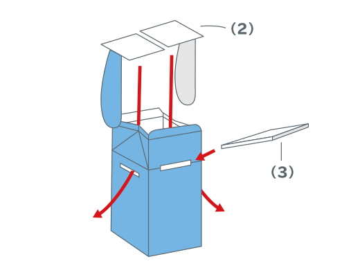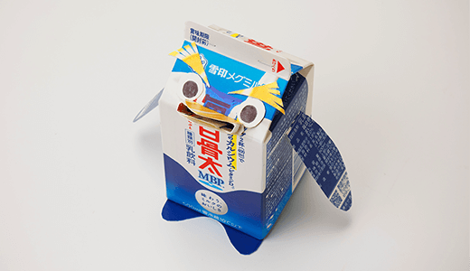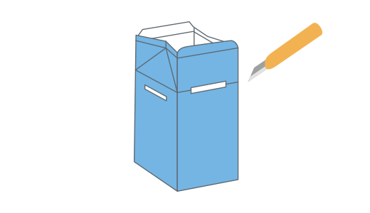 1つめの牛乳パックに切(き)り込みを入れ本体をつくります。