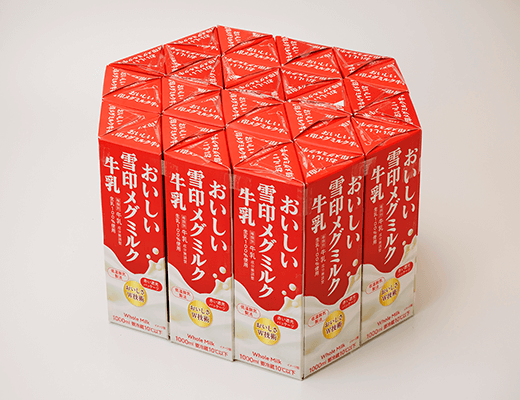 牛乳パックの上部(じょうぶ)を完全(かんぜん)に開き、側面(そくめん)の一箇所(いっかしょ)の角にそって切ります。底面(そこめん)に十文字(じゅうもんじ)に切れ目を入れます。