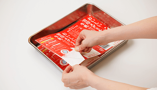 同じように裏面(うらめん)のポリエチレンもはがします。