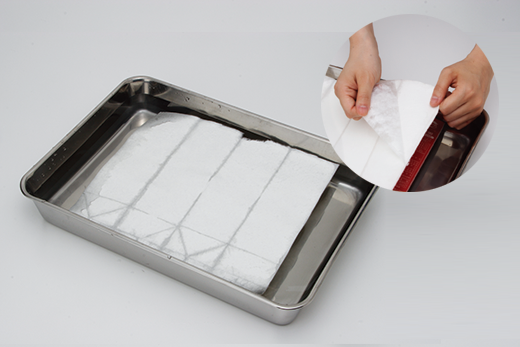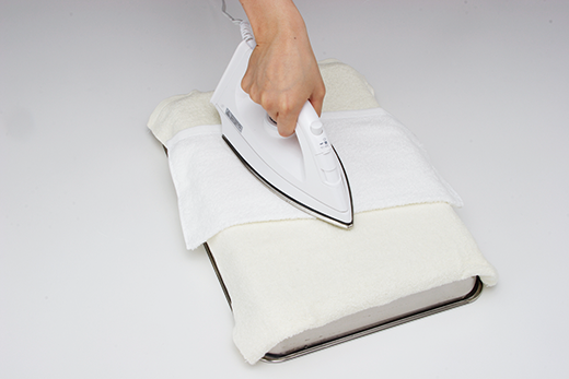 タオルで水気をきって、アイロンでよく乾燥(かんそう)させます。