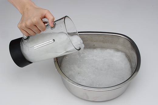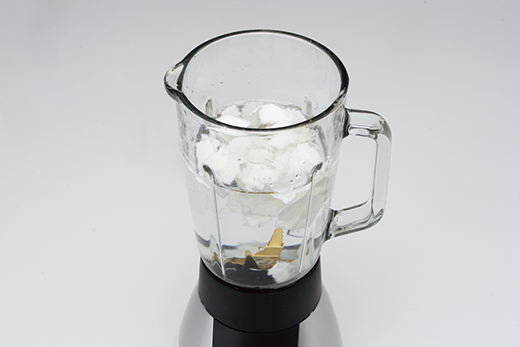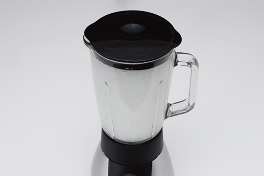 少しずつミキサーに入れ、水をミキサー容器(ようき)の2/3ほど加えます。