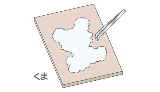 バットの底(そこ)など、平らな板(いた)の上におき、ピンセットなどで好きな形(かたち)を作ります。