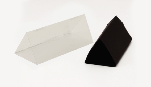 三角柱(さんかくちゅう)の側面(そくめん)を黒い紙でおおい、セロハンテープでとめます。