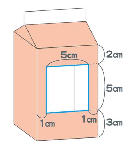 牛乳パックの胴体(どうたい)部分を図のように切り取ります。