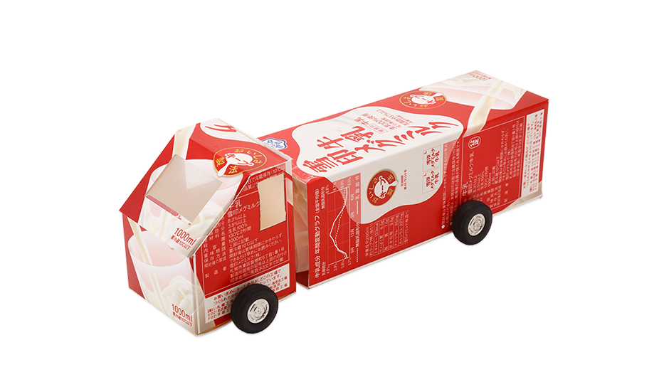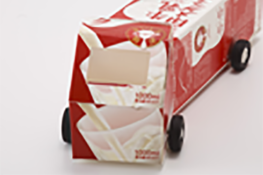 牛乳パックの屋根(やね)を切り取って、コンテナに使います。