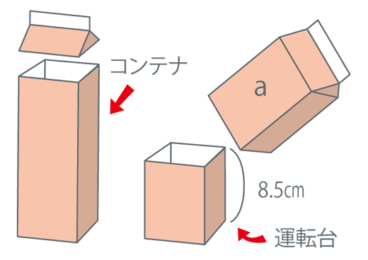 もう1この牛乳パックを、底から8.5cmのところで切って、運転台(うんてんだい)に使います。 -