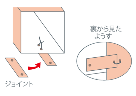 〈2〉で切り抜いたジョイント2枚を張り合わせ、両端(りょうはし)に穴をあけます。