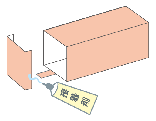 コンテナのフタは、のりしろに接着剤(せっちゃくざい)をぬり、コンテナにはめ込んでくっつけます。