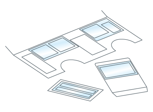すべての窓(まど)に、ガラスに見立てたクリアファイルをはります。窓(まど)より少し大きく切って、内側(うちがわ)から接着(せっちゃく)します。