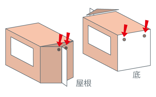 図のように、屋根(やね)と底(そこ)に、穴(あな)をあけます。