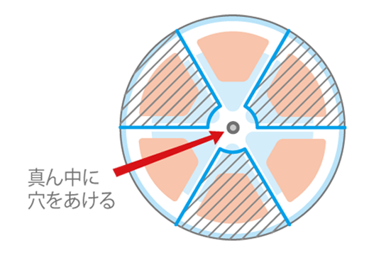 図のように切りはなします。中心には、竹ひごを通す穴をあけます。 -
