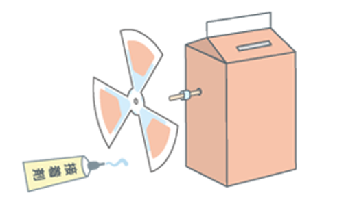 牛乳パックの、屋根(やね)や底(そこ)を切る時は、とても硬(かた)いので、大人(おとな)の人にてつだってもらいましょう。