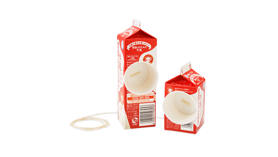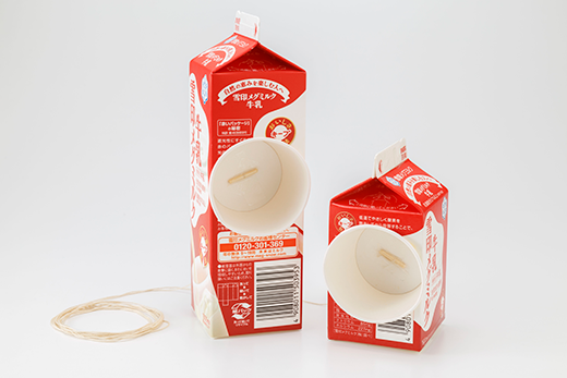 小さなお子さまが遊ぶ時は、500mlの牛乳パックを使うと良いでしょう(右側)。