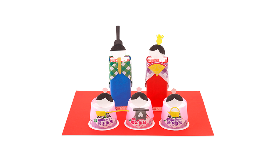 下の「おだいりさなとおひなさまのパーツ」と「官女(かんじょ)のパーツ」を印刷し、それぞれを切り取ります。顔(かお)の部分は、牛乳パックを開いて、切り取ります。