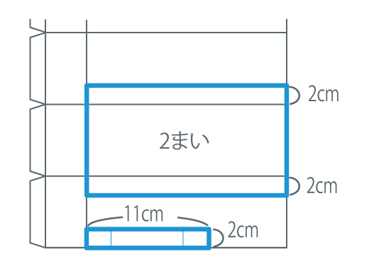 牛乳パックを開いて、図のように、大きいもの2枚と、小さいもの1枚を切り取ります。