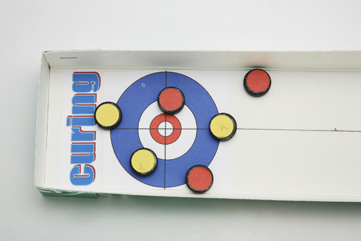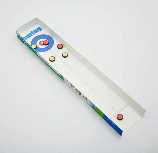3. ストーンを強くはじきすぎると、ひっくり返って、他のストーンとくっついてしまいます。このような場合、そのストーンをはじいたチームは、くっついてしまったストーンの数だけ、得点がマイナスされます。