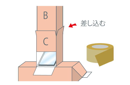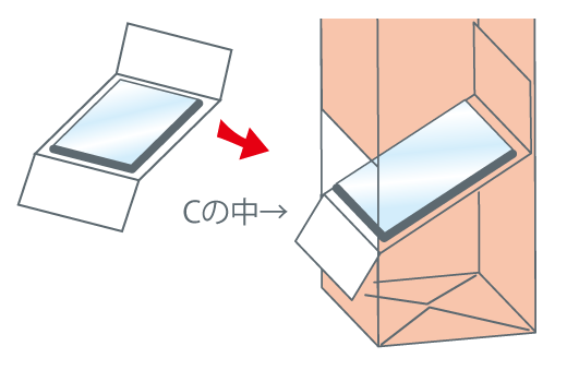 〈D〉の窓に、〈C〉を差し込んで、接着します。