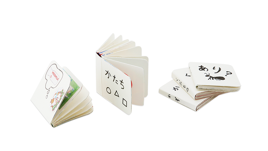 油性(ゆせい)マジックで絵や、物語(ものがたり)をかいたり、シールをはったりします。