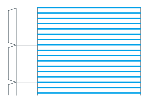 短冊を、3本ひと組にし、図のように、互い違いに重ねて、ホチキスでとめます。