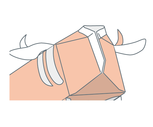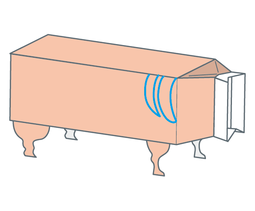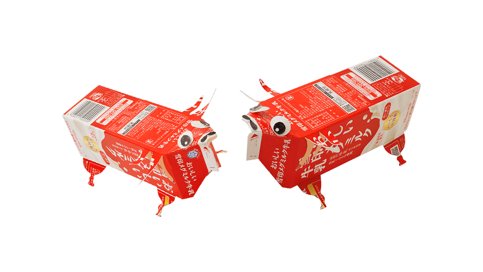 牛乳パックの底(そこ)を切りぬいて、しっぽを作ります。