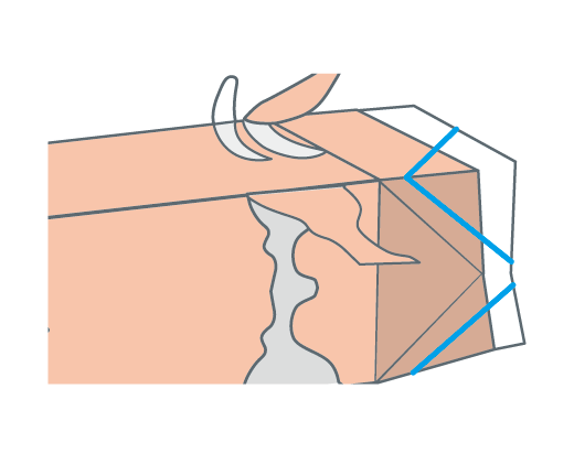 図のように、屋根(やね)の部分を切ります。