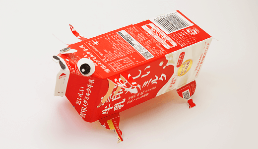 牛乳パックの、屋根(やね)や底(そこ)を切る時は、とても硬(かた)いので、大人(おとな)の人にてつだってもらいましょう。