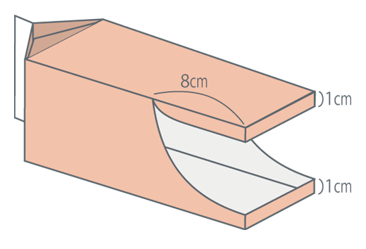 図のように、カーブをつけて切り取り、大きな口を作ります。
