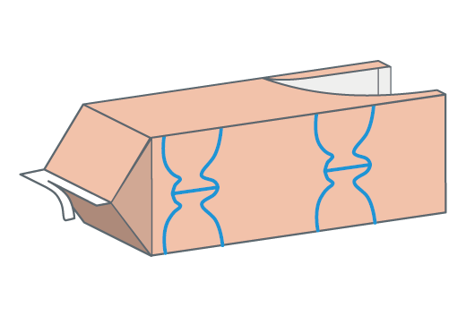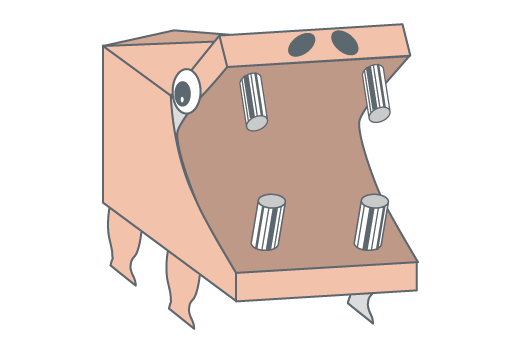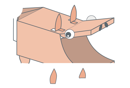 屋根(やね)の部分は、そそぎ口を接着剤(せっちゃくざい)でふさぎ、切り込みを入れてしっぽを作ります。