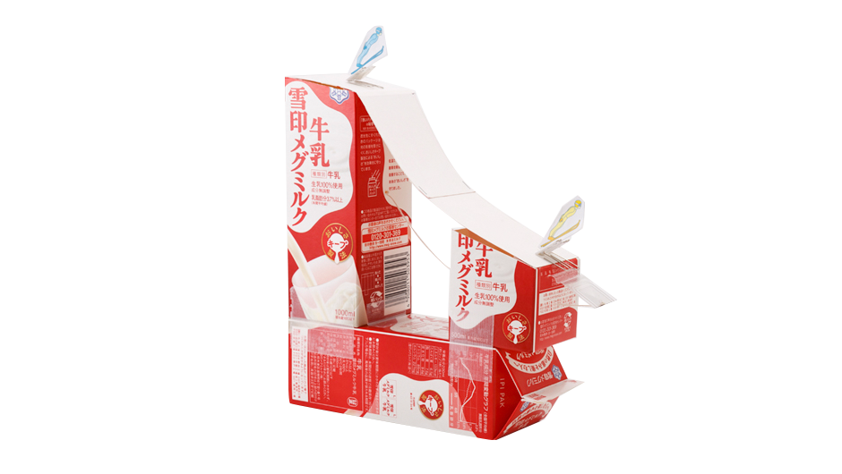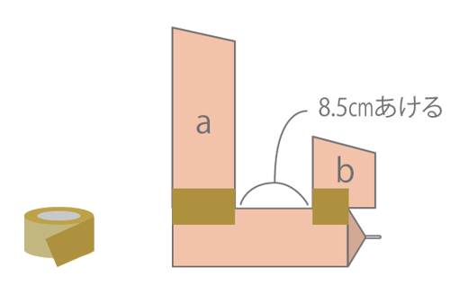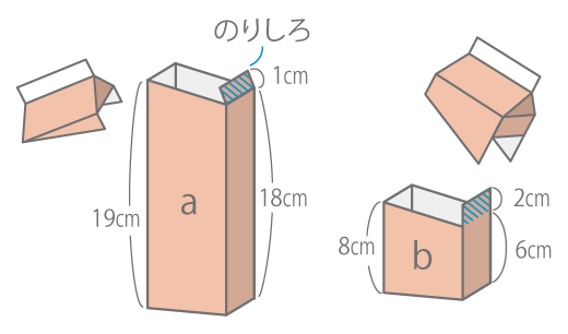 のこりの牛乳パックに、ガムテープで〈a〉と〈b〉をはり付けます。