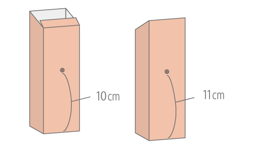 反対側(はんたいがわ)には、下から11cmのところに、穴を開けます。 -
