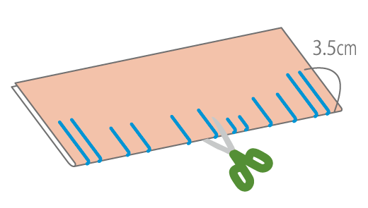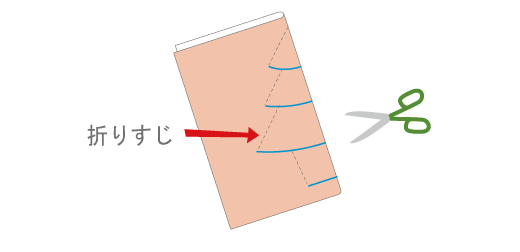 2つ折り(おり)にして、図のように、切り込みを入れます。