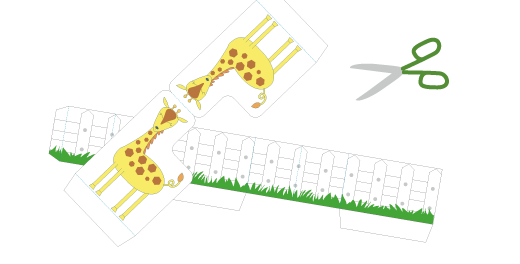 柵(さく)は、点線(てんせん)のところで、折り目をつけます。