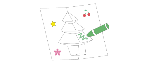 クレヨンなどで絵をかいたり、シールをはるなどして、飾り(かざり)つけします。