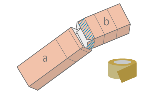 〈b〉をさかさまにして、のりしろの部分を〈a〉に差し込み(さしこみ)、ガムテープでとめます。