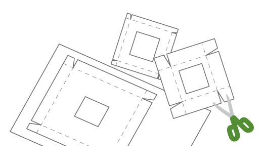 画用紙(がようし)に、屋根〈ア〉を4枚、〈イ〉と〈ウ〉を8枚、〈エ〉を4枚、図面(ずめん)を書き写して、切り取ります。 -