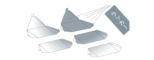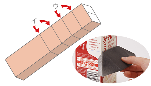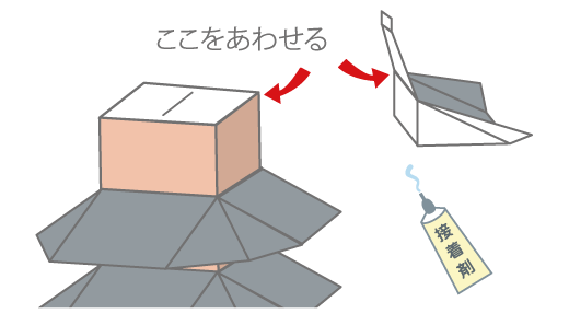 土台〈C〉に、屋根〈ア〉を、四方に接着し、なぎ合わせます。