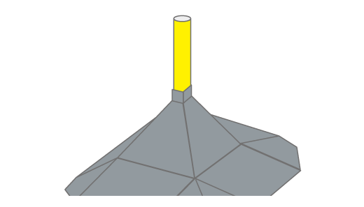 鉄塔(てっとう)を、くるくると丸めて、筒(つつ)をつくり、屋根のてっぺんにさして、とめます。