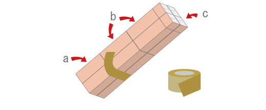 図のように〈a〉〈b〉〈b〉〈c〉の順に、つなぎ合わせ、ガムテープでとめます。