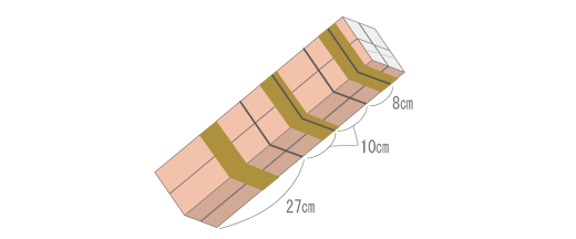 図のように、27cm、10cm、10cm、8cmと、屋根をはる位置に、印をつけておきます。