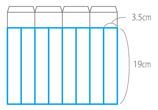 牛乳パックは、2つとも開いて、19cm×3.5cmの大きさに、16枚切ります。