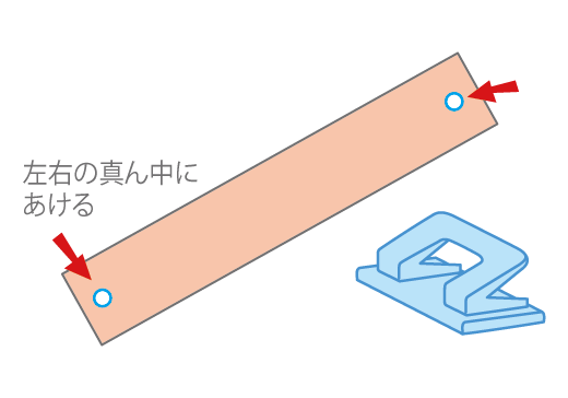 16枚すべてを図のように、穴あけパンチで穴を開けます。