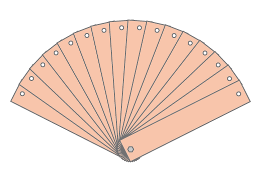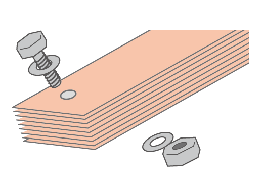 すべて重ねます。片方の穴から、ワッシャーを通したボルトをさし込み、ワッシャーとナットでとめます。