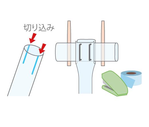 残りのストローの、ジャバラ部分は切りおとし、図のように切り込みを入れます。