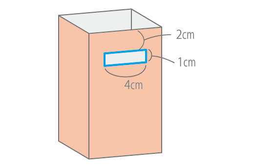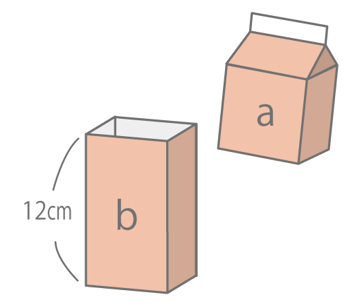 牛乳パックは、底(そこ)から12cmのところで、切りわけます。