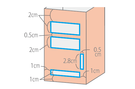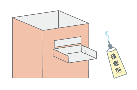 〈2〉で切った〈e〉は、のりしろを、図のように接着して、フタにします。